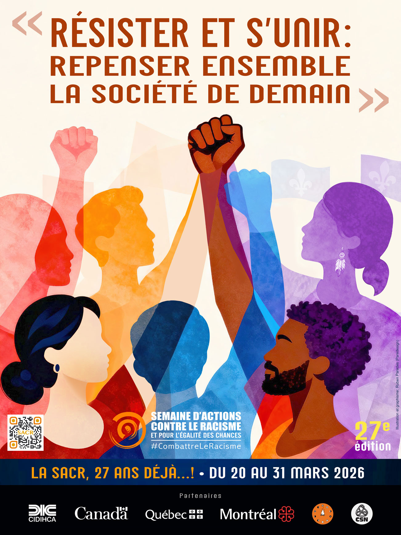 Le comité organisateur de la SACR vous invite chaleureusement à participer aux activités prévues pour cette édition 2026 (page d'inscription). Nous encourageons la soumission de propositions d'activités, qu'elles soient virtuelles ou en présentiel, pour favoriser une large participation. Rejoignez-nous et contribuez à faire de cette semaine un moment fort de sensibilisation et de changement pour un Québec plus juste et inclusif.