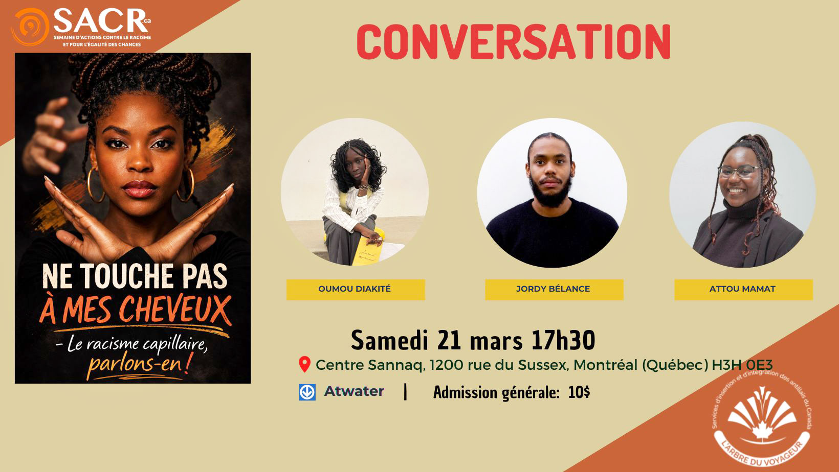 Description de l'activité : Dans le cadre de la Semaine d’action contre le racisme, L’Arbre du Voyageur propose une conversation de sensibilisation et de dialogue autour du racisme capillaire, une forme de discrimination encore largement banalisée.
