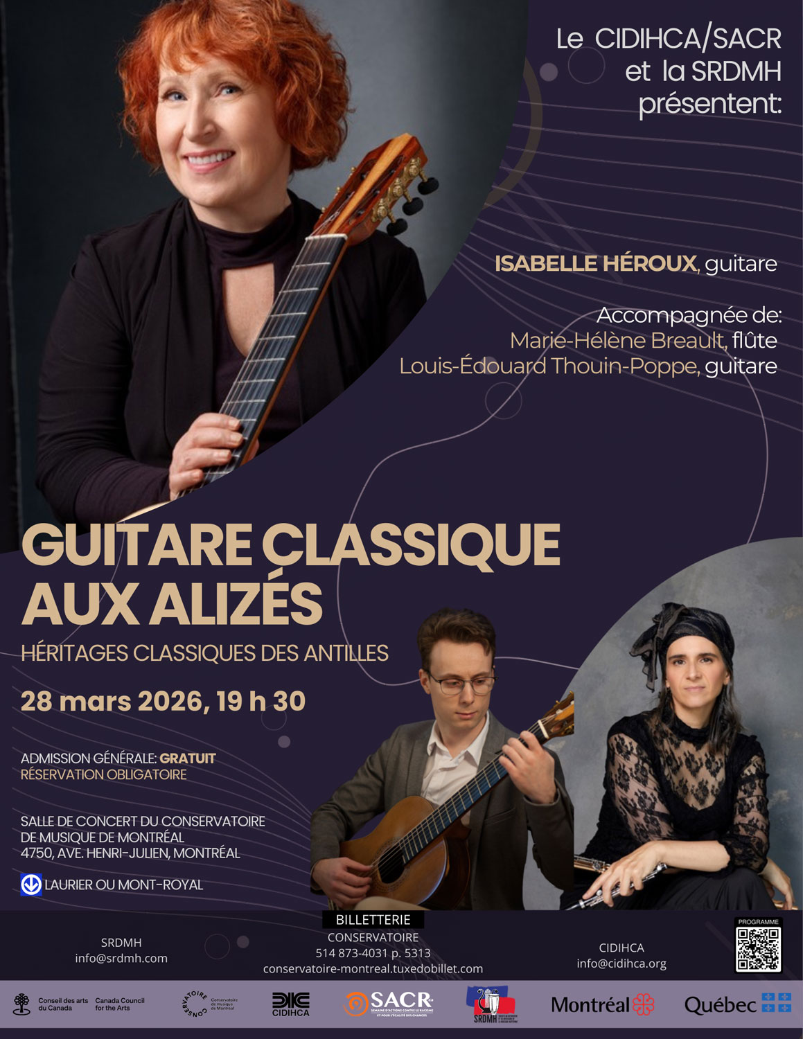 Lieu de l'événement : Salle de concert du Conservatoire de musique de Montréal, 4750, ave. Henri-Julien, Montréal (Métro : Laurier ou Mont-Royal)
