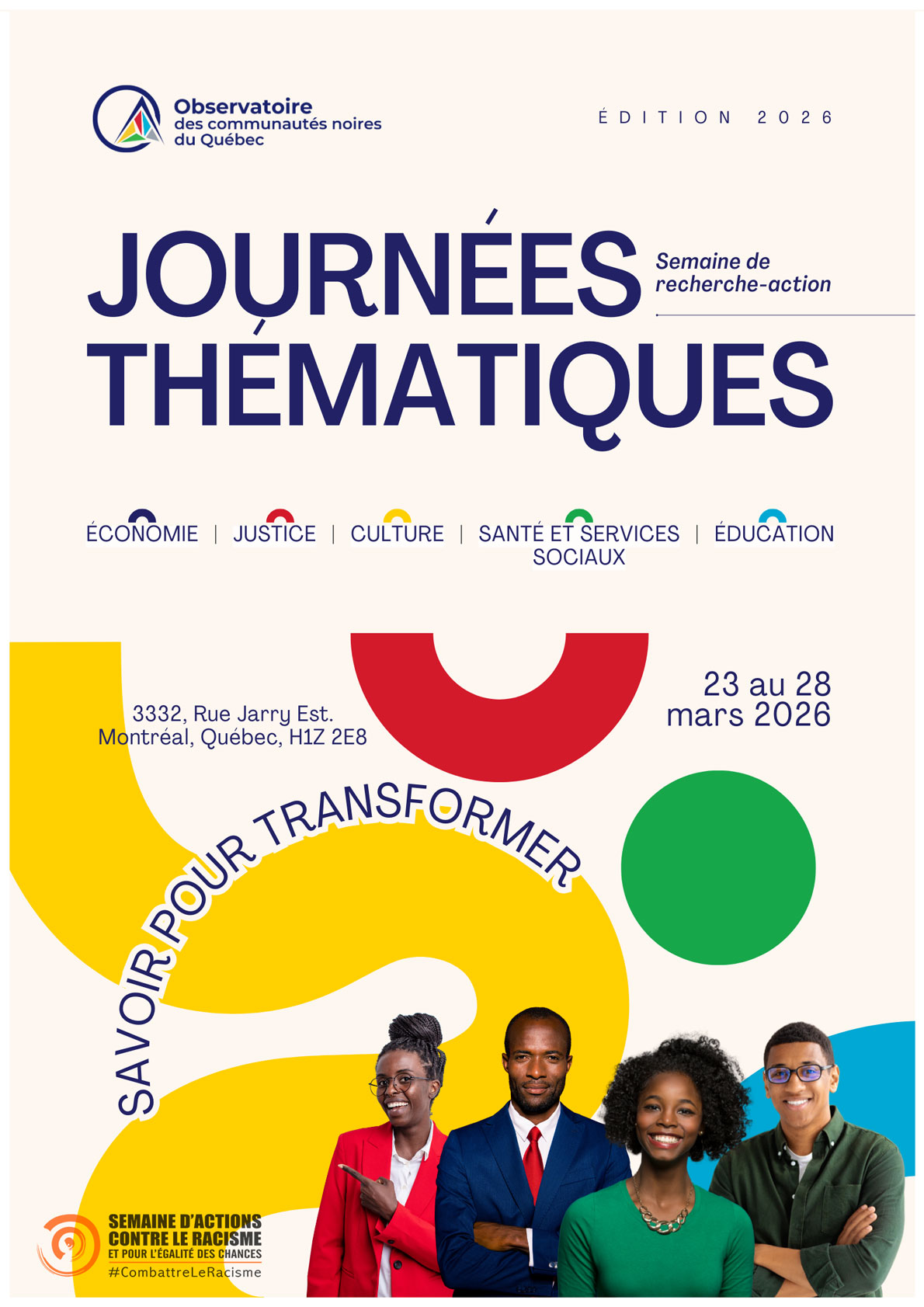 L’Observatoire des communautés noires du Québec vous convie aux Journées thématiques 2026, du 23 au 28 mars 2026.