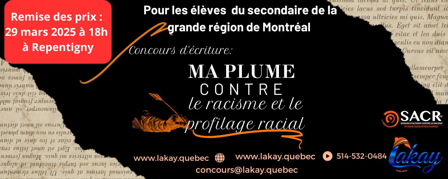 Description de l'activité : Remise des Prix – Concours Ma Plume contre le Racisme et le Profilage Racial. Cérémonie de remise des prix de la troisième édition du concours Ma Plume contre le Racisme et le Profilage Racial.