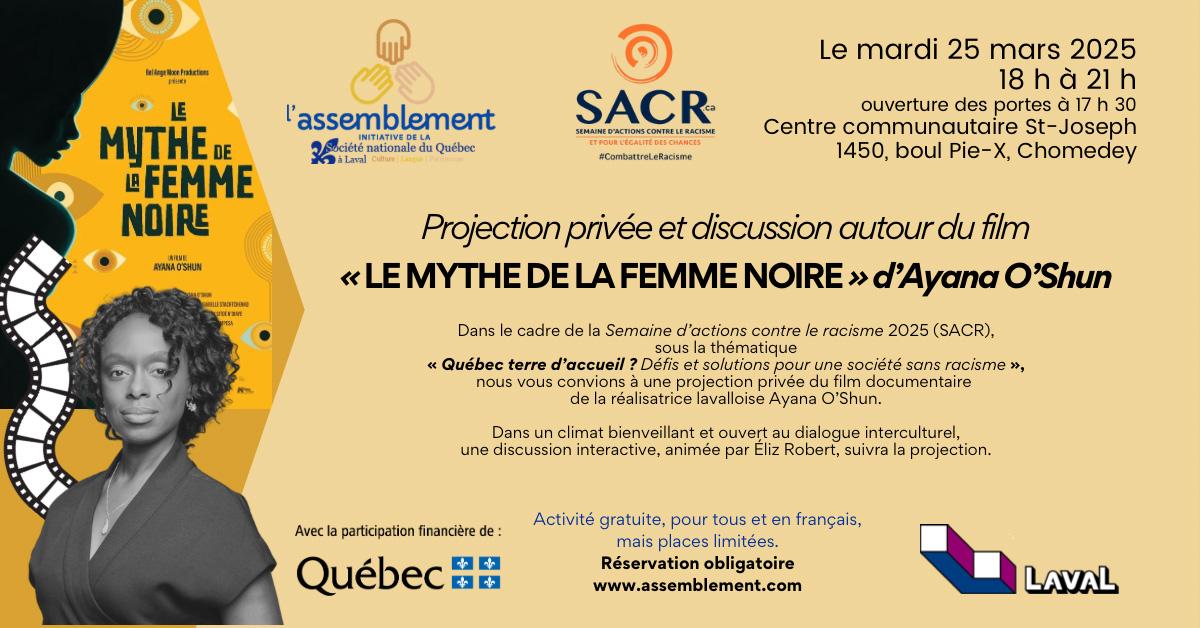 Cette activité est offerte au grand public à l'initiative de Femmes en Emploi , avec la participation financière de MIFI, Ville de Laval et la Fondation Canadienne des relations raciales. Elle sera suivie d'une conférence débat. Événement gratuit.