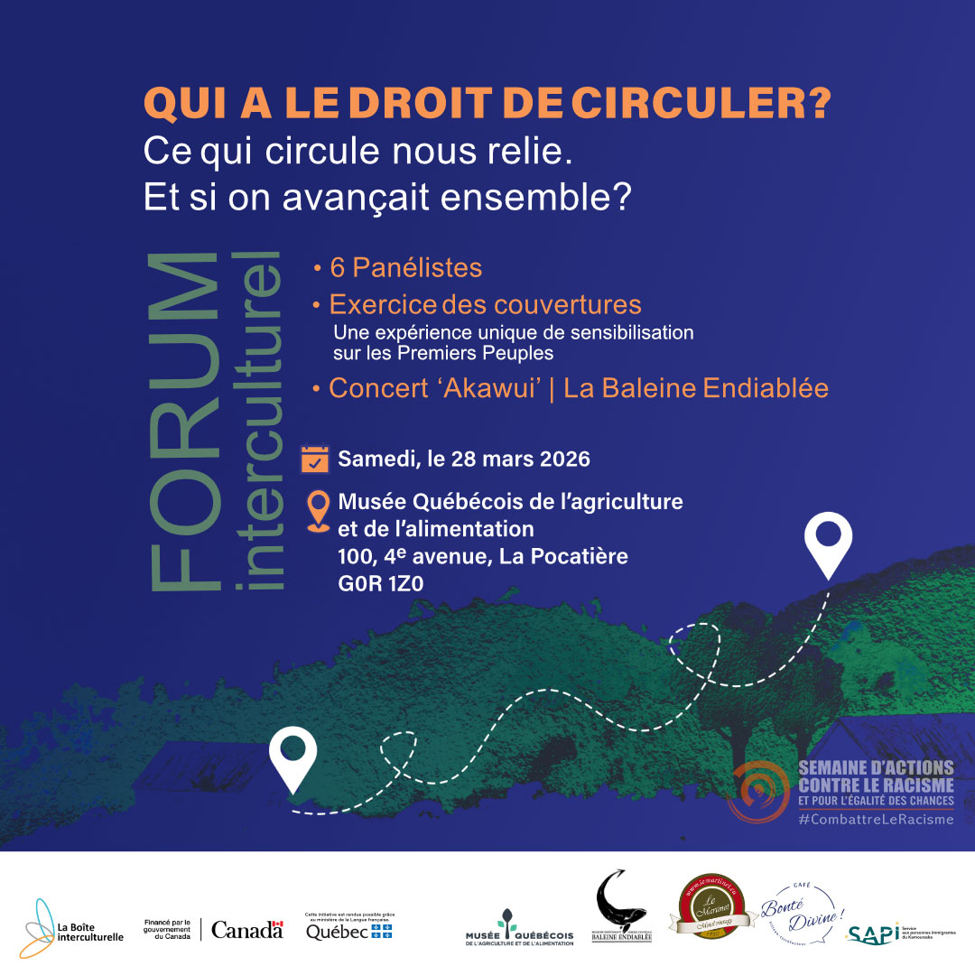 Description de l'activité : Premier Forum interculturel du Bas-Saint-Laurent est une invitation à se rencontrer, à jaser et à réfléchir ensemble à la façon de faire vivre des communautés rurales ouvertes, vivantes et solidaires. Dans une ambiance chaleureuse, on prend le temps d’échanger, d’écouter et de partager nos idées autour de questions qui nous concernent tous.